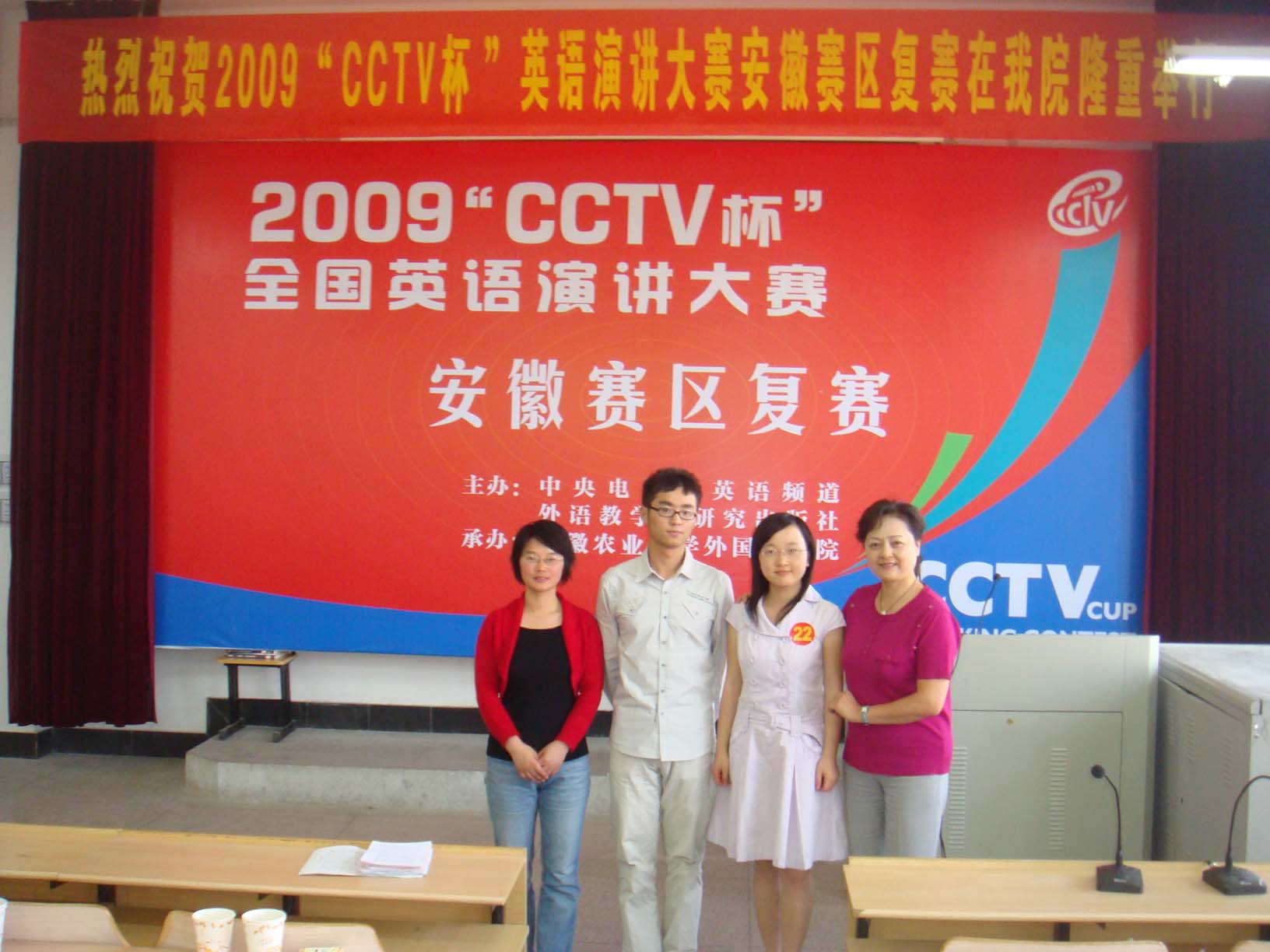 2009“CCTV杯全国英语演讲大赛”安徽省赛区复赛经过三天的比赛,于周日在安徽农业大学外国语学院落下帷幕。来自全省32所高校英语和非英语专业的73名选手参加了角逐。在激烈竞争中,我校派出的两名选手吴婧、朱宇翔同学表现不俗,脱颖而出,双双获得三等奖。