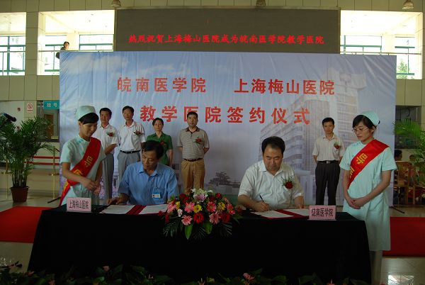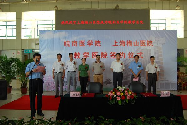 8月26日下午,我校教学医院—上海梅山医院签约揭牌仪式在该院门诊大厅隆重举行。副院长李朝品,人文与管理系主任胡鸿,教务处副处长陈斌;南京市雨花台区卫生局副局长朱家翔,上海梅山医院党政领导、各职能科室和临床医技科室负责人、我校实习同学及部分患者家属代表共100余人参加了庆典仪式。