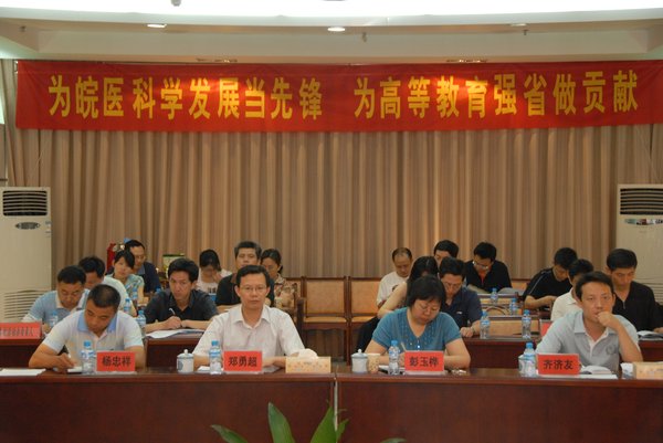 省属高校学习实践活动第一指导检查组组长丁伯华,副组长沙奇志、江贻东及检查组成员,省属高校学习实践活动办公室联络组组长朱晓明,我校党委书记卞国忠、党委副书记郑勇超,安徽师范大学、安徽工业大学、安徽工程科技学院、滁州学院、河海大学文天学院、安徽机电职业技术学院、安徽商贸职业技术学院、安徽中医药高等专科学校、马鞍山师范高等专科学校、芜湖职业技术学院、芜湖信息技术职业学院、滁州职业技术学院、宣城职业技术学院、马鞍山职业技术学院等15所高校学习实践活动领导小组及办公室负责人参加了会议。会议由省属高校学习实践活动第一指导检查组副组长沙奇志主持。
