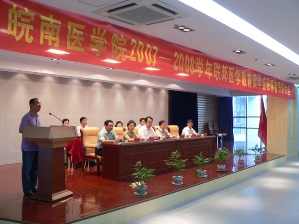 6月3日下午,我校2007~2008年度“联邦医学教育奖学金”颁奖仪式在三楼学术报告厅隆重举行。校党委副书记郑勇超、联邦制药国际控股有限公司副总经理蔡亚禄出席了颁奖仪式。学生处、教务处、团委以及相关系部负责人和其他联邦制药有限公司嘉宾、师生代表400余人参加了颁奖仪式。颁奖仪式由李朝品副院长主持。