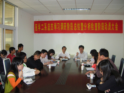 520日上午,医学二系党总支在系西三楼会议室召开学习调研阶段总结暨分析检查阶段动员大会,党委副书记、纪委书记程度莅临会场指导,系党总支书记姜国年、全体教工党员、学生党员代表参加了会议,会议由教工支部书记李娜主持。