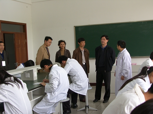 此次毕业考核的技能考试阶段从4月25日开始至4月30日结束,共持续6天。这次考试改革是学校落实科学发展观,加强内涵建设,提高教学质量的一大举措,因此得到了学校领导、教务处和医学一系的高度重视。医学一系对整个考试过程做了精心策划和安排,宋建国院长在教务处王丽处长的陪同下,前往技能考试现场进行视察,看望组织、参与考试的老师和学生。