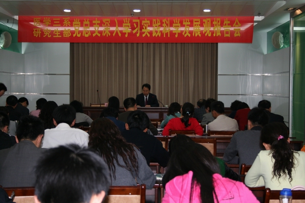 李朝品副院长为医学三系和研究生部党总支作学习实践科学发展观辅导报告