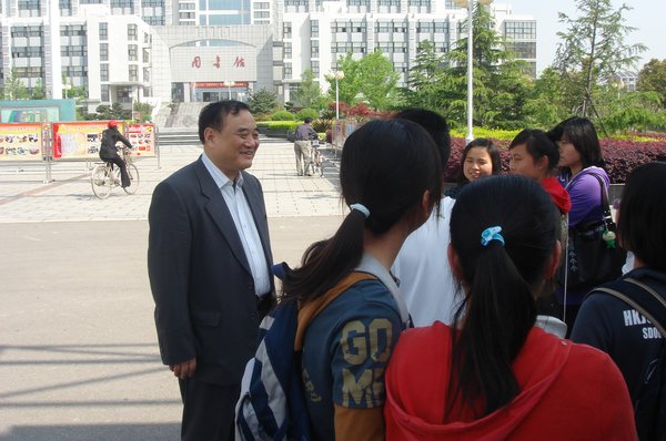 卞国忠书记与参加无偿献血的学生亲切交谈