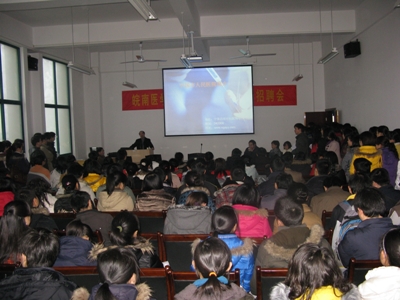 2009年2月27日上午,新春伊始,宁国市人民医院来我校招聘临床、护理、麻醉、影像、卫管及研究生等专业的毕业生共29人,宁医的程朝辉院长等一行5人在我校大学生活动中心二层多功能会议厅与前来应聘的200余名同学进行了供需见面和交流,现场气氛融洽,秩序井然。目前,招聘单位已将学生自荐材料带回,很快将与学生联系笔试、面试等事宜。校领导的高度重视,学生处细致周到的组织,系部老师和辅导员的大力支持使会议得以圆满召开。