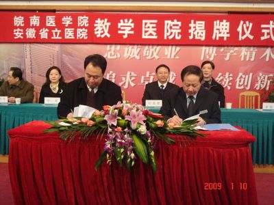随后,副院长李朝品和安徽省立医院院长许戈良共同签署教学医院合作协议。