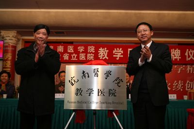 宋建国院长和省卫生厅副厅长杜昌智共同为教学医院揭牌