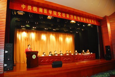 结业典礼在庄严的国歌声中拉开帷幕。党校常务副校长周强在讲话中肯定了学员在党校学习期间的表现,赞扬了在党校学习涌现出的优秀学员和先进事迹。他同时提出三点希望:一是继续深入学习贯彻党的十七大精神,全面学习实践科学发展观,;二是继续学习党的基本知识和基本理论,不断提高政治觉悟和理论水平;三是处处以共产党员的标准严格要求自己,充分发挥模范带头作用。教学一班李磊同学代表优秀学员在结业典礼上发言. 党校副校长李军华宣读了《关于表彰党校第二十九期培训班优秀学员的决定》。