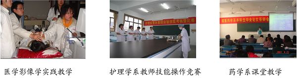 (1)完善人才培养方案,加强课程体系建设和教材建设。学校根据医学教育功能的社会化、内容的人文化、课程的综合化的现代医学教育特点,修订了培养方案。调整公共课、专业基础课、专业课的配置,加大了选修课特别是人文社会科学课程选修课的开设力度,设立素质学分,增加实践教学课时,推进了人才培养模式改革。根据课程建设“十一五”规划的总体思路,精心设计适应21世纪要求的教学内容和课程体系,建成省级精品课程7门、省重点建设课程5门。机能实验中心成为省基础课实验教学示范中心,临床技能实践教学中心是省级示范实训(实验)中心。学校将教材建设作为专业和课程建设的重要组成部分来抓,鼓励教师主编、参编高质量教材。近年,由我校教师主编、参编教材79部,其中,主编、副主编国家级规划教材各4部,获全国高等学校医药优秀教材一、三等奖2部。选用高质量教材,其中近3年出版的教材年均超过95%,优秀教材年均超过77%,为保证教学质量奠定了基础。