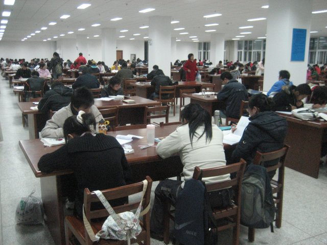 同学们在图书馆阅览室认真地学习