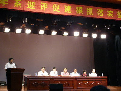大会开始前,全体到会人员为在汶川大地震中死难的同胞默哀三分钟。会上,系主任吴少云首先做了誓师动员报告。吴主任指出,在评估最后冲刺的关键阶段,无论系领导、普通教师还是广大学生,一定要时刻铭记自己是皖医的一份子,要时刻关心母校的发展,承担起应有的责任;全系师生要以清醒的认识、积极的状态和饱满的热情营造出深厚浓烈的评建氛围,将自己的言行举止同学校的发展密切结合起来,全力支持学校夺取迎评促建攻坚战的胜利。