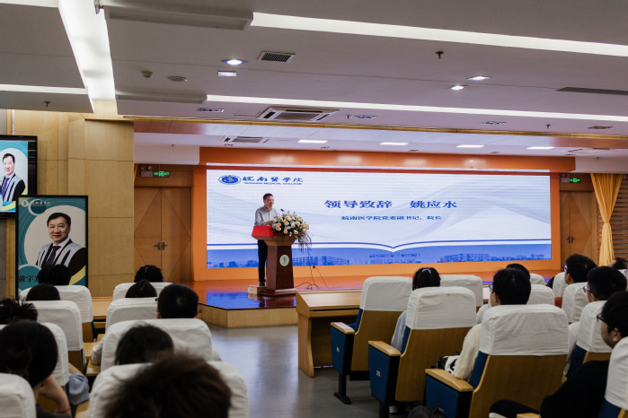 姚应水在致辞中表示,黄宇光教授始终不忘学医初心与使命,刻苦学习、艰苦奋斗,实现医学梦想,他克服艰难坎坷的成长经历和成功经验正是我们广大青年学子亟需补充的能量。希望广大学子和即将毕业的2024届同学以黄宇光教授为榜样,见贤思齐、发奋图强,树立精英意识,汲取奋进力量,勇敢接过前辈手中的“接力棒”,赓续皖医精神,续写皖医华章。