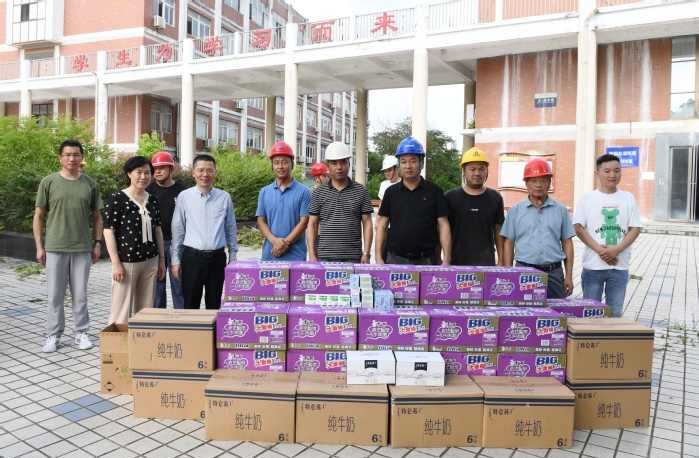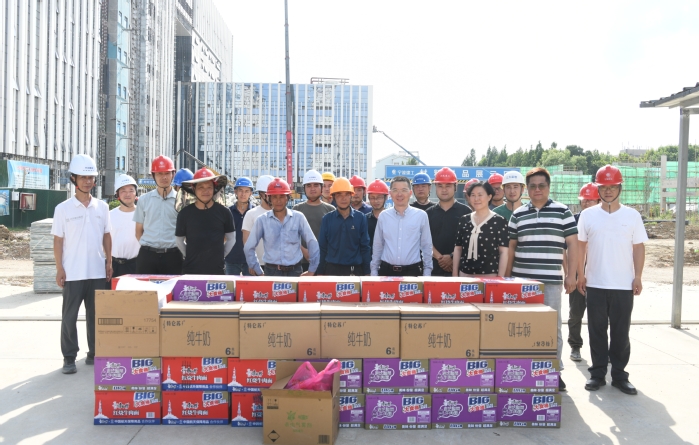 夏日炎炎,骄阳似火。7月8日下午,党委副书记、院长姚应水,党委副书记贾贤燕先后赴滨江校区(南区)、产学研创中心建设项目现场,为坚守在高温一线的建筑工人送去牛奶、方便面和夏日防暑降温物品,给他们带去学校的关心与问候。