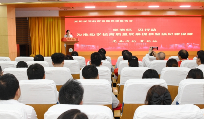 夏劲松作党纪学习教育专题党课,要求全校广大党员、干部,以党纪国法为标尺,以反面典型为镜鉴,以先进典型为标杆,将勤廉并重作为履职准则和成事基础,狠抓落实,勇立潮头,为建设国内有影响、特色鲜明的区域性高水平医科大学作出新的更大贡献。