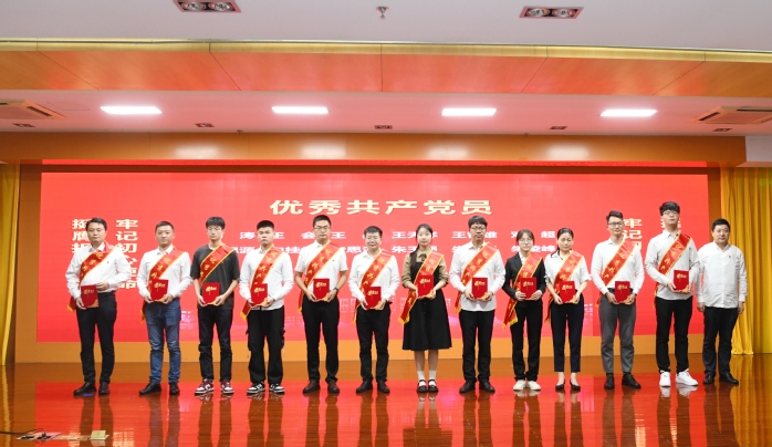 在欢快喜庆的旋律中,党委书记夏劲松向“光荣在党50年”党员代表颁发纪念章,预备党员向老党员们敬献鲜花。校领导依次为受到表彰的集体和个人颁发证书和奖牌。