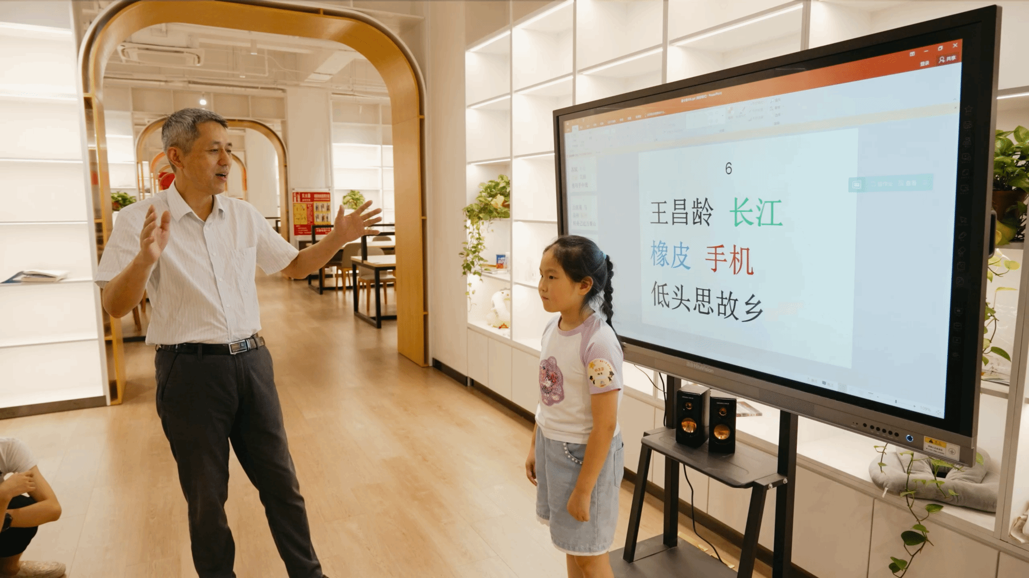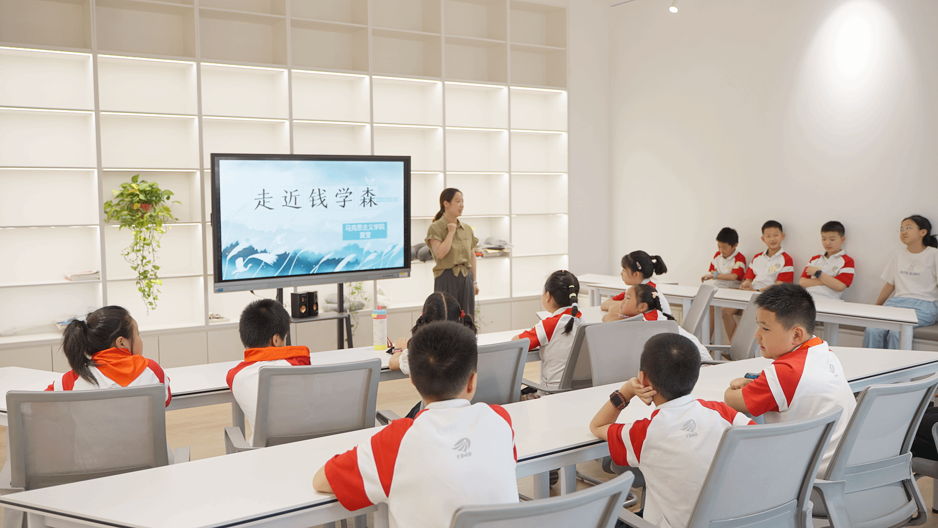 研学活动以一场别开生面的升旗仪式拉开帷幕。校国旗护卫队迈着铿锵有力的步伐护送五星红旗入场,伴随着雄壮激昂的《义勇军进行曲》,五星红旗冉冉升起。教职工子女身着校服,佩戴红领巾,庄严肃立,向国旗行队礼和注目礼,齐声高唱国歌,向伟大祖国表达崇高的敬意。研学导师带领孩子们开展“走近钱学森”认识历史人物活动;观看《中国地理环游记》,云畅游祖国大好河山;举行诗词大会,引导孩子们了解诗词背后的大美中国故事;学唱儿歌《红星闪闪》,让“爱我中华”的种子牢牢扎根在孩子们心里。