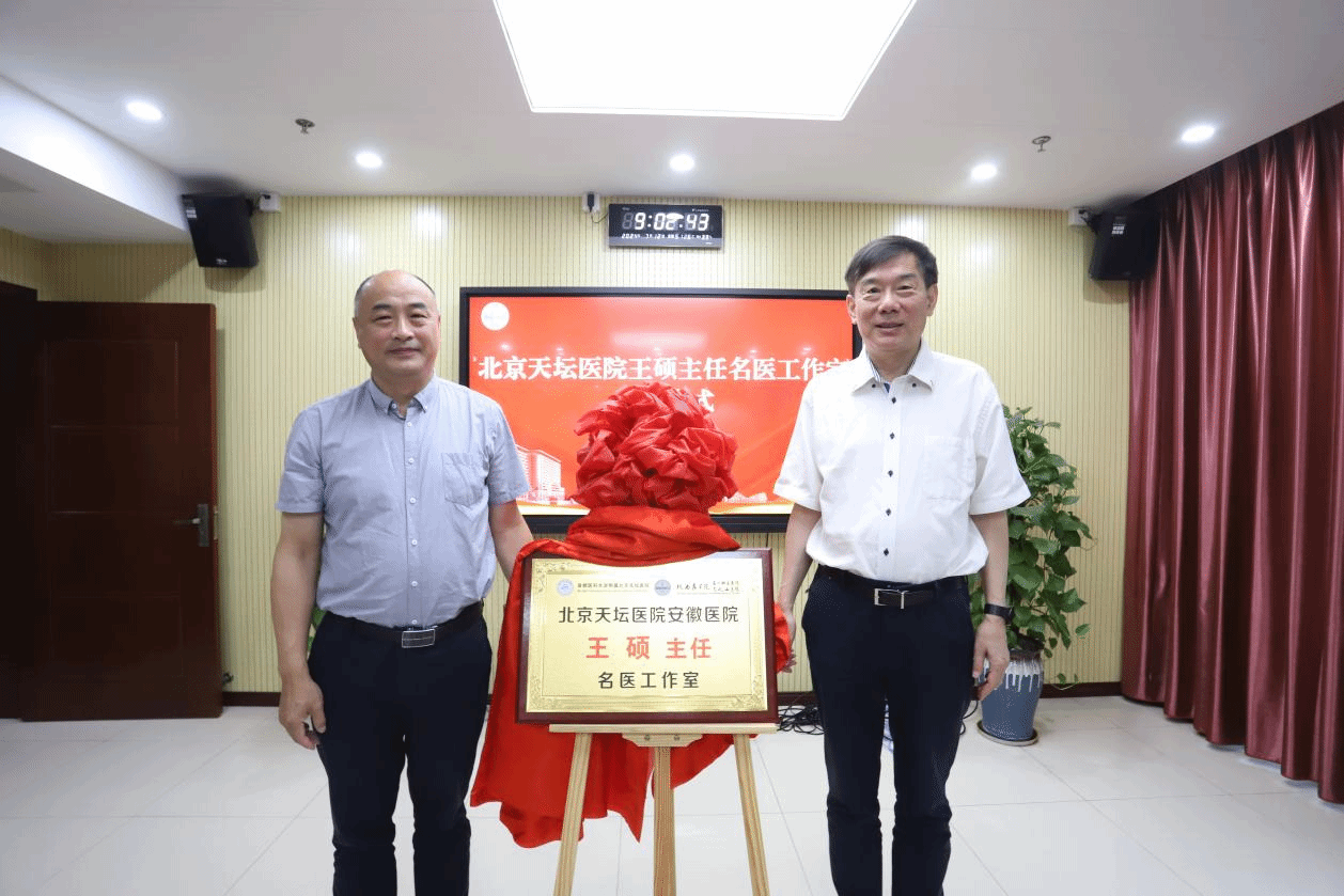 7月12日,首都医科大学附属北京天坛医院“王硕名医工作室”在我校第一附属医院揭牌。校党委常委、第一附属医院党委书记、北京天坛医院安徽医院党委书记陈晓宏,第一附属医院副院长、北京天坛医院安徽医院副院长江晓春,北京天坛医院安徽医院副院长王昊、许杰,北京天坛医院派驻专家王硕、王江飞、叶迅出席仪式,相关职能科室、临床科室负责人参加仪式。江晓春主持仪式。