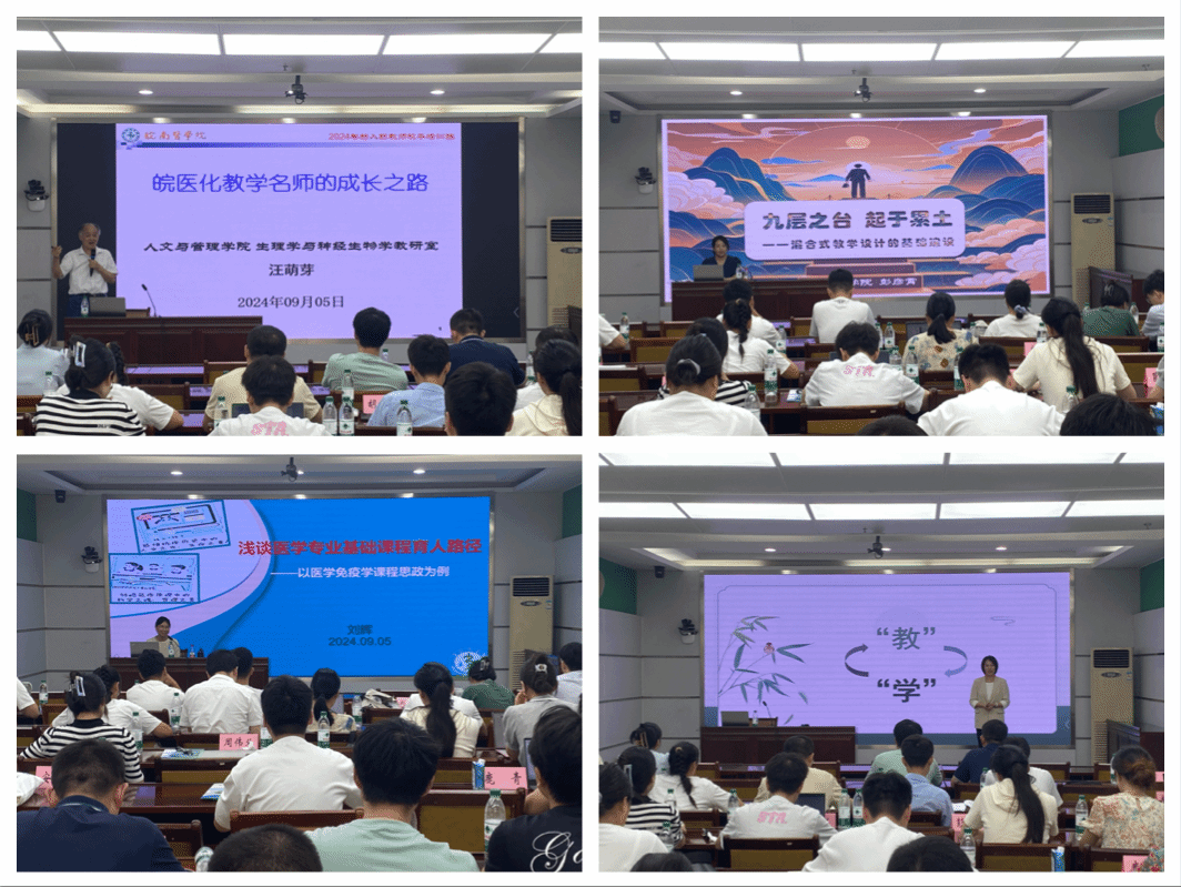 校“十佳教师”、人文与管理学院汪萌芽,校“十佳教师”、基础医学院刘辉,基础医学院彭彦霄、产翠翠分别以“皖医化教学名师的成长之路”“混合式教学设计的基础建设”“浅谈医学专业基础课程育人路径”“青年教师的‘教’与‘学’”为题与新教师深入交流,助力青年教师站稳站好讲台。