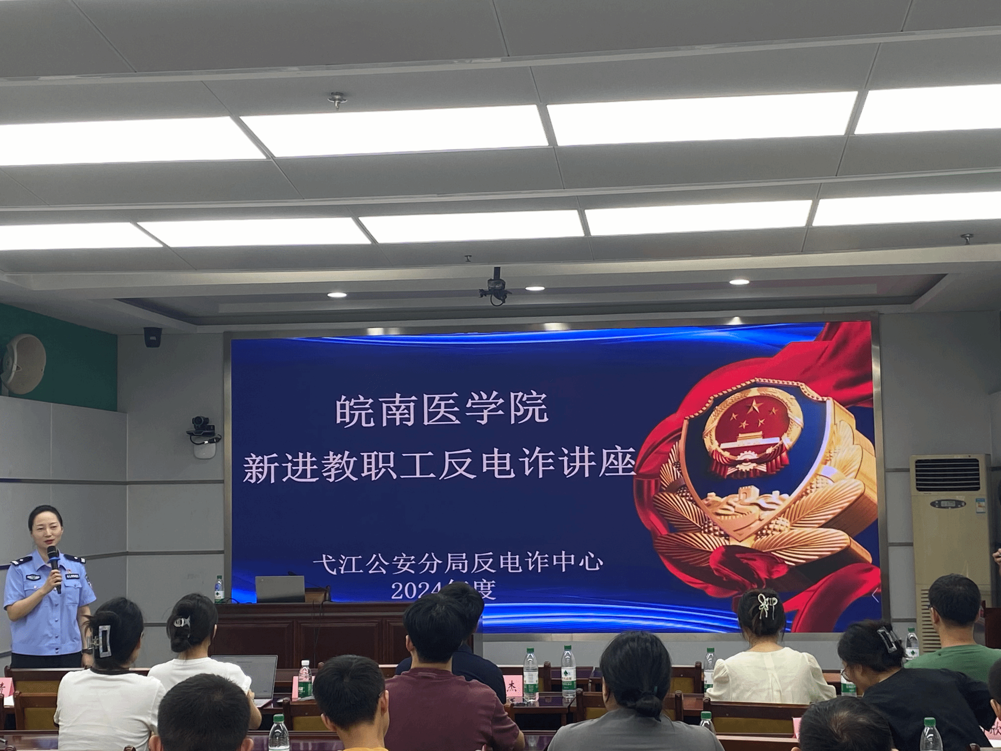 芜湖市弋江公安分局反电诈中心主任王薇讲解了电信网络防范措施,进一步提高新进教师反诈安全意识;保卫处处长张琪琪希望新教师们积极承担起学生反诈宣传工作。