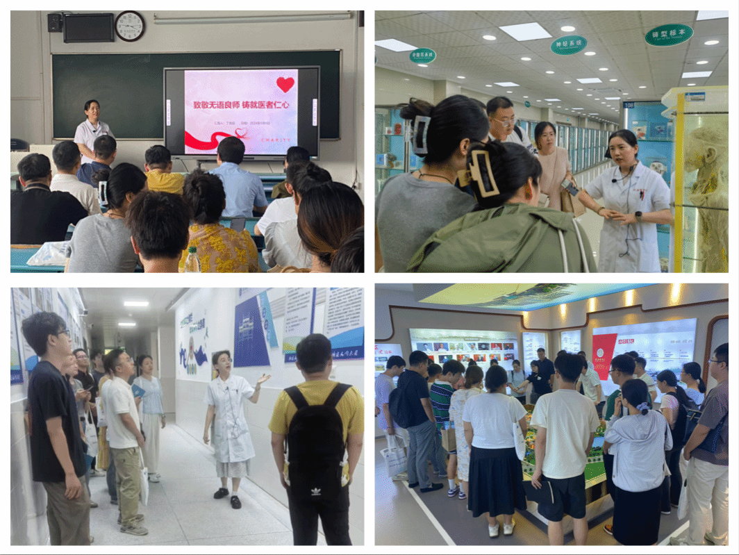新进教职工参观了校史馆、人体解剖标本馆及遗体捐献接受站,聆听了校“十佳教师”、基础医学院丁艳霞“致敬无语良师 传递人间大爱”的讲座,加深对学校的认同感和归属感,增强了奉献医学教育事业的使命感。