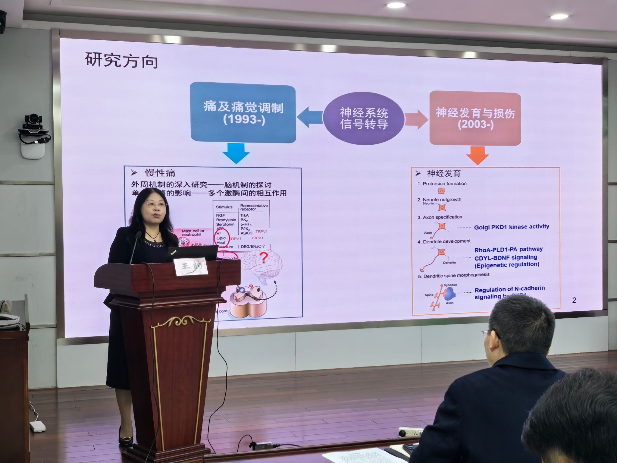 会前,王韵教授为我校师生带来了一场题为“神经系统信号通路的研究——疼痛、神经发育、损伤修复”的学术报告。报告深入浅出地讲述了其在疼痛研究领域的发现, 从TRPV1的靶向药理、Cdk5调控炎性痛的机制、炎性痛诱导细胞骨架重组以及神经发育与脑疾病中的关键分子等方面介绍了其在疼痛治疗方面的研究成果。