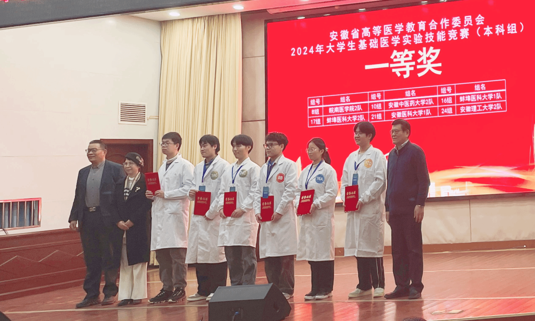 12月28日,安徽省高等医学教育合作委员会2024年大学生基础医学实验技能竞赛(本科组)在安徽医科大学落下帷幕,我校参赛学生在竞赛中获一等奖1项、 二等奖3项。