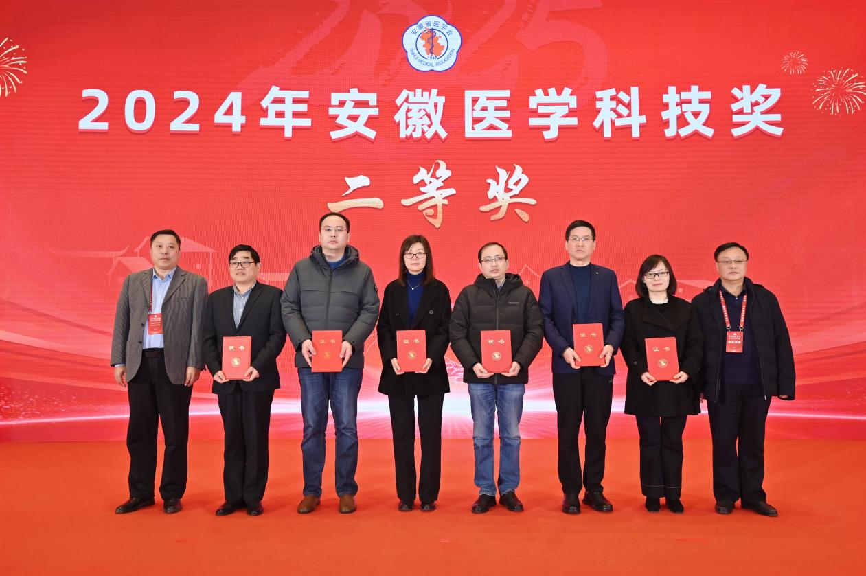 近日,安徽省医学会2025年年会暨第十二届理事会第三次会议在合肥召开。会上举行2024年安徽医学科技奖颁奖仪式,我校第一附属医院获二等奖1项、三等奖2项。