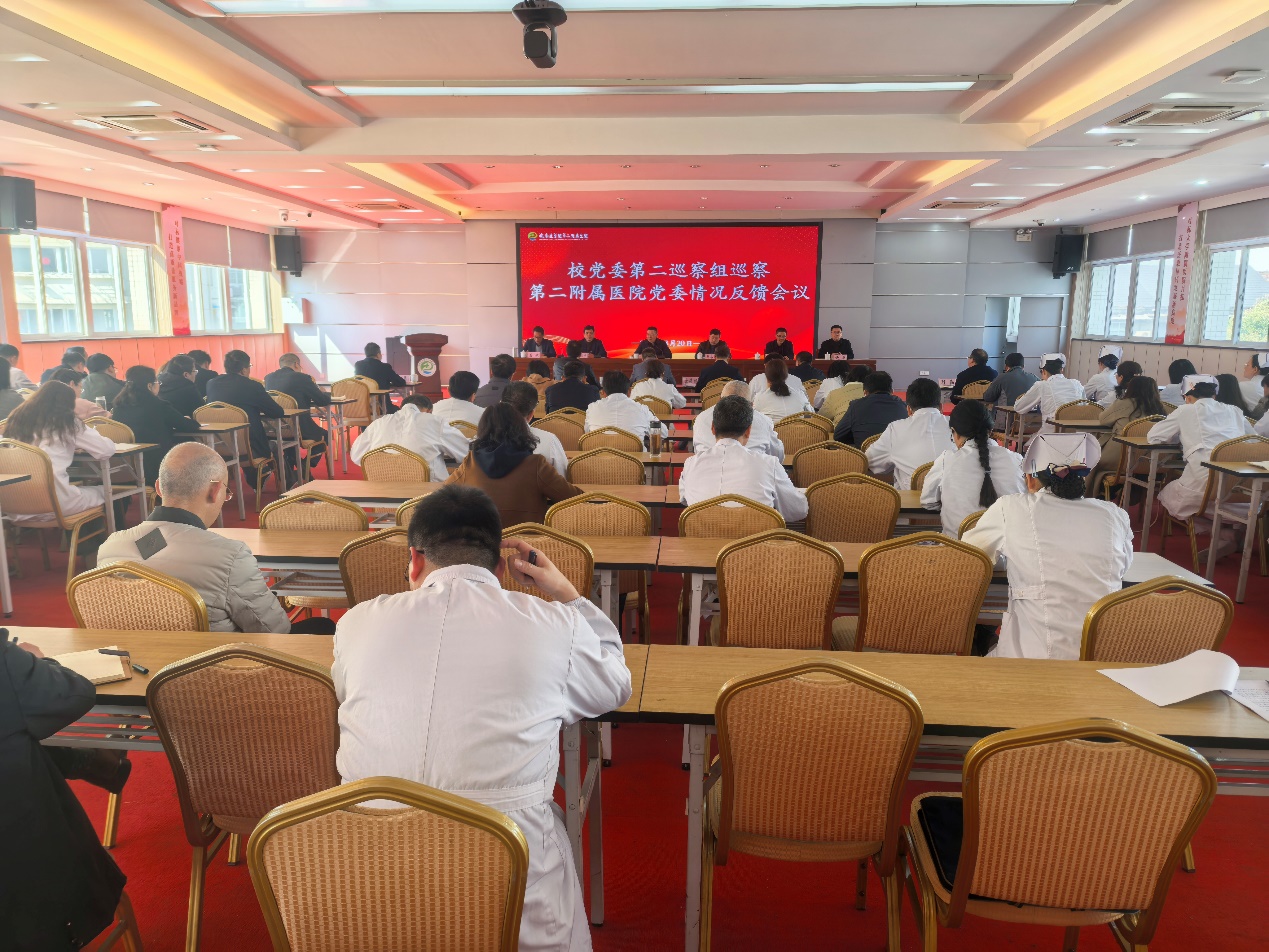 第一、第二巡察组负责同志以及第一、第二附属医院党委班子成员等参加集中反馈会议。发规处主要负责人,第一、第二附属医院班子成员、中层干部、正高级职称人员、党支部书记等分别参加“一对一”反馈会议。