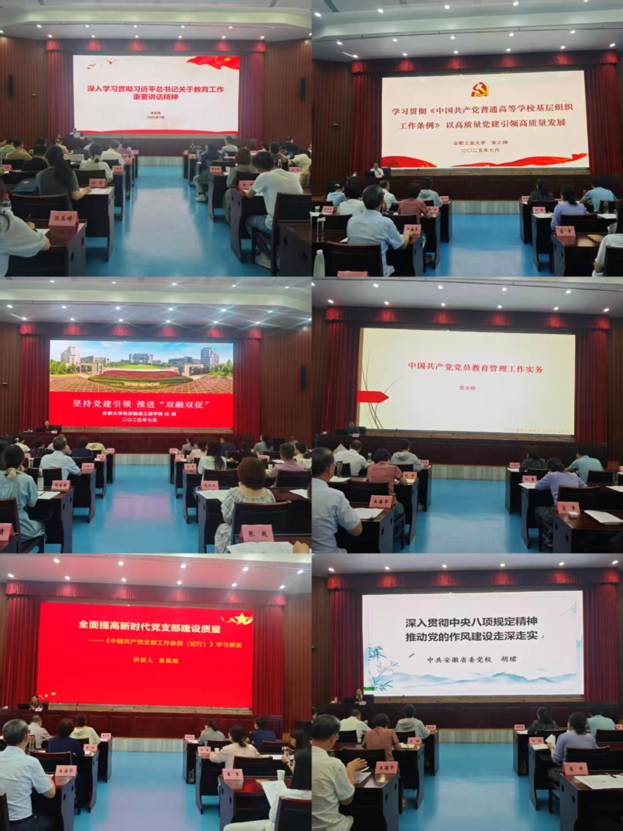 为深入学习贯彻中央八项规定精神,全面提升党务工作者的政治素养和业务能力,7月3日至5日,我校在安徽组织干部学院举办2025年基层党务工作能力提升培训班,全校党支部书记、支部委员、组织员及部分年轻干部近60人参加培训。