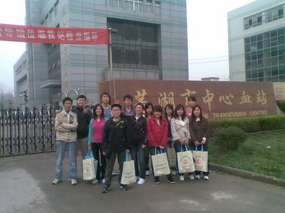 三月是志愿者服务月,本着“秉承雷锋精神,弘扬志愿风采”的 宗旨,医学三系07口腔1班全体同学开展了一次集体献血活动。3月21日上午,我们乘车来到芜湖市中心血站,大家井然有序地进行登记、体检、化验、采血,积极配合采血工作者的各项工作,身为热血青年的我们献出了自己的一份热血!虽然有些同学由于身体欠佳未能献血,但他们还是热情洋溢地为献血的同学服务,整个采血室洋溢着一股浓浓的暖意。
