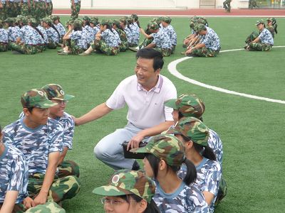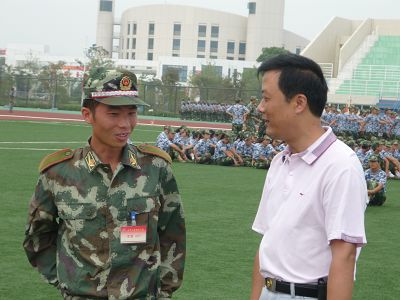 在传统的中秋佳节,我系党总支书记刘群同志放弃了节日休息,在辅导员马旭明老师的陪同下,早早来到训练场,为教官和学生送去了节日的问候;并和军训教官进行了亲切交谈,详细询问了军训的内容和进程,高度赞扬了教官的训练效果。