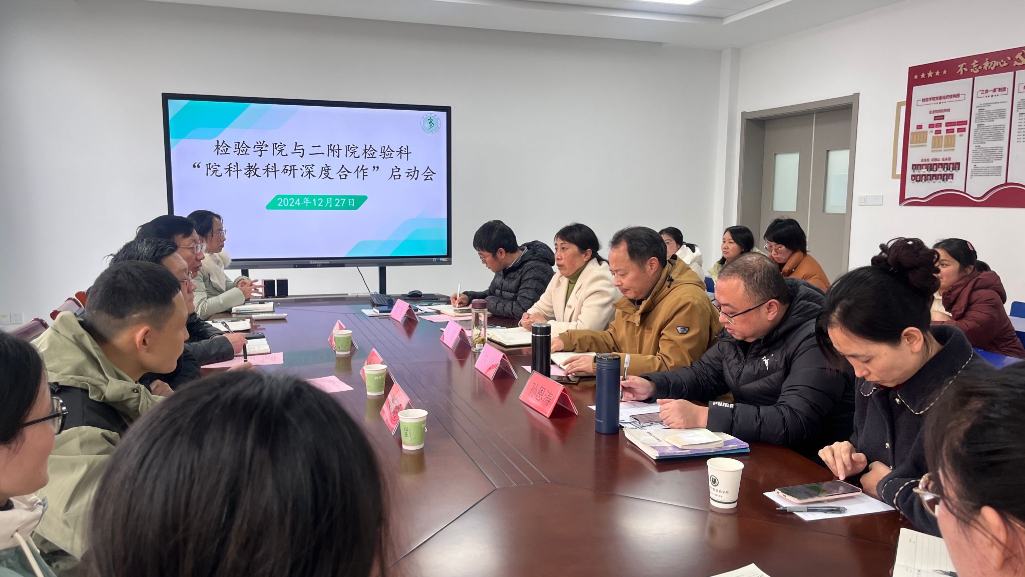 12月27日下午,检验学院与第二附属医院检验科在检验学院会议室举行“院科教科研深度合作”启动会。检验学院党委书记刘影、院长洪亮,第二附属医院副院长徐炜、检验科主任吴竞等参会,会议由医学检验与卫生检验实验实训中心副主任刘飞主持。