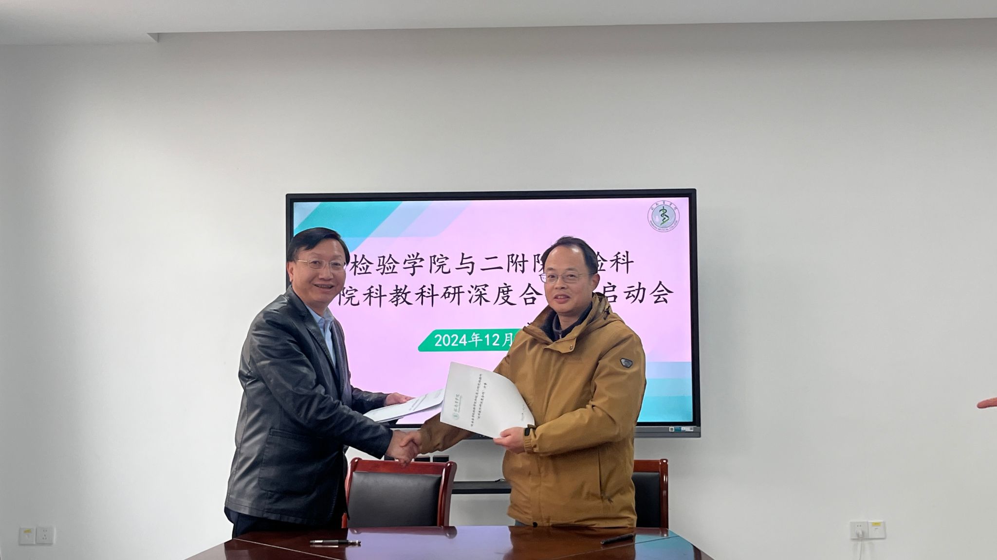 此次“院科教科研深度合作”协议的签署,标志着检验学院与第二附属医院检验科在科研与教学领域的合作迈出了重要一步。双方将通过资源共享、优势互补,共同推动医学教育和科研高质量发展。(刘飞/文  李镜/摄)