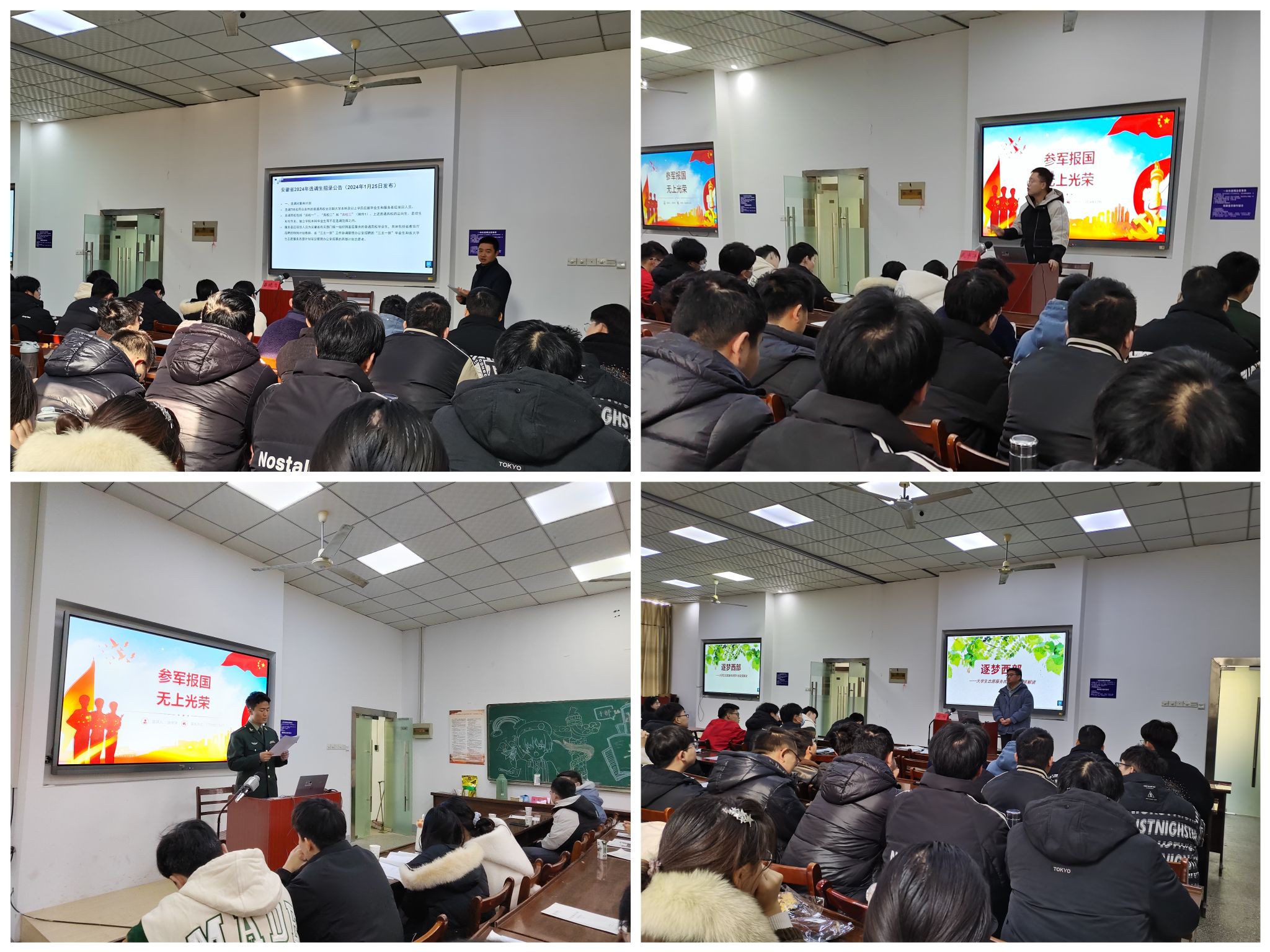此次会议重点向毕业生宣讲选调生考录、应征入伍、“西部计划”和“三支一扶”等就业政策。吕晓飞结合近五年我校考取安徽省选调生情况,为同学们详细讲解选调生报考政策,包括报考条件、录用方式、信息填报注意事项等,动员符合条件的同学了解政策、积极报名。武宇洋从国防的重要性入手,为同学们详细解读入伍参军相关政策,包含应征入伍报名条件、报名流程、服役期间待遇及今后发展路径。退役复学学生刘俊以自身经历为例,讲述自己的军旅生活,分享自己的入伍心得,激发了在场同学们的参军报国热情。刘竹为同学们介绍了“西部计划”相关政策,播放了“西部计划”宣传片,呼吁同学们积极响应国家号召,深入乡村振兴一线,到祖国最需要的地方,让青春磨砺出彩,让人生奋斗升华。2025届辅导员芮家慧深入分析了近年法医学院毕业生就业情况,并就毕业生关注的求职信息获取、网签流程、档案派发、合同签订、应届毕业生身份认定等问题进行了悉心指导,还就求职安全等问题进行提醒。