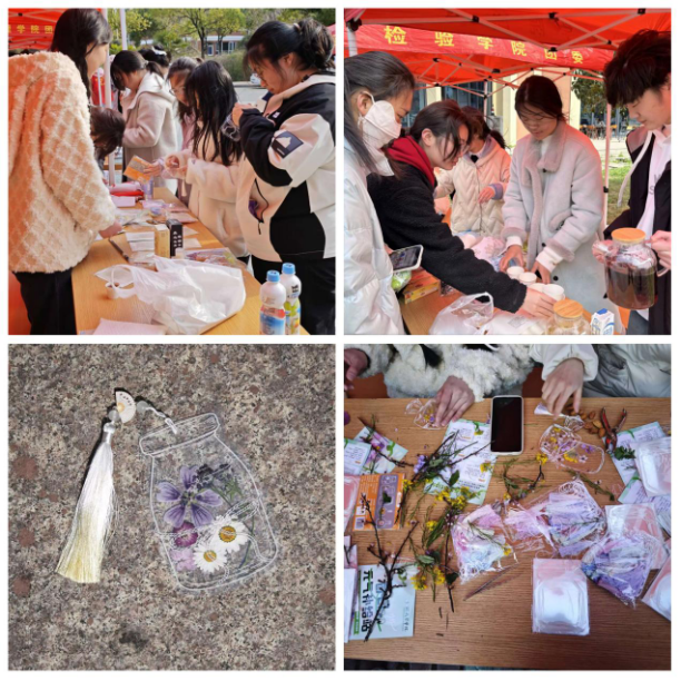 我为同学办实事,中医文化润心田。立足学生需求,学院学生会在南区食堂南门举办了“春日元气补给站”主题活动。作为学校“学雷锋,我们在行动”系列实践活动中的一环,本次活动以“我为同学办实事”为核心理念,通过免费发放春日养生茶饮和DIY干花书签创作两大环节,将雷锋精神融入校园生活的点滴中,吸引了众多皖医学子参与。活动现场,学生会工作人员以“微笑服务+健康科普”的模式,一边为同学们递上温热的茶饮,一边讲解茶饮功效,同时发放有关中医春日养生小tips的宣传单。