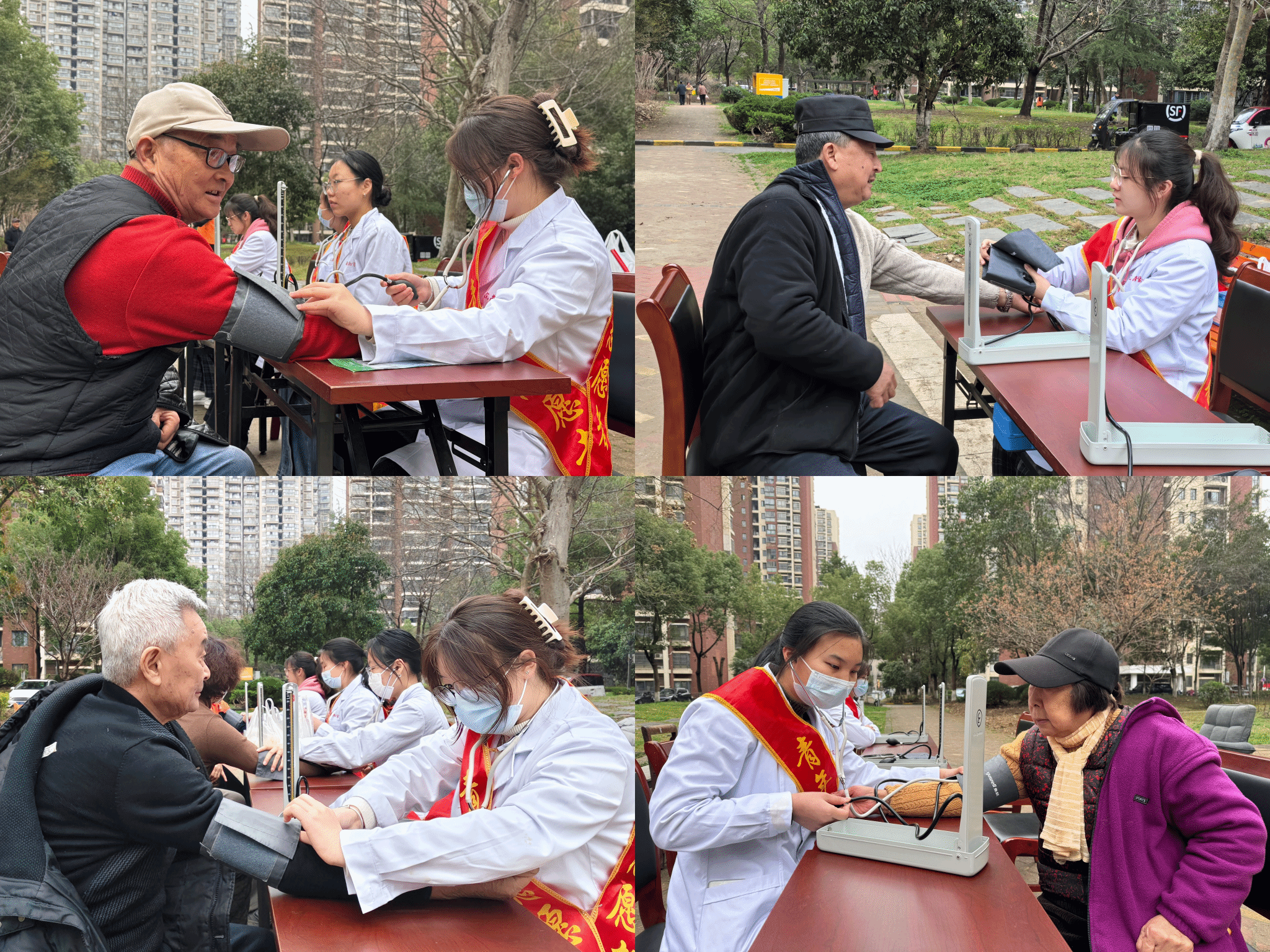 社区义诊暖民心,健康服务零距离。3月14日,学院成长对话志愿团前往中央城E区开展以“青春暖夕阳,医心护健康”为主题的志愿活动。活动现场,志愿者们耐心地为每一位居民测量血压,解答居民的各种疑问,并根据测量结果为他们提供合理的建议,同时叮嘱他们在日常生活中应该合理饮食、适量运动。此外,志愿者们开展了预防春季传染病的宣讲活动,大家用通俗易懂的语言,向居民们详细介绍了流感、诺如病毒等春季常见传染病以及“三高”的早期症状和预防方法,提醒居民们注意饮食卫生、加强锻炼,提高自身免疫力。