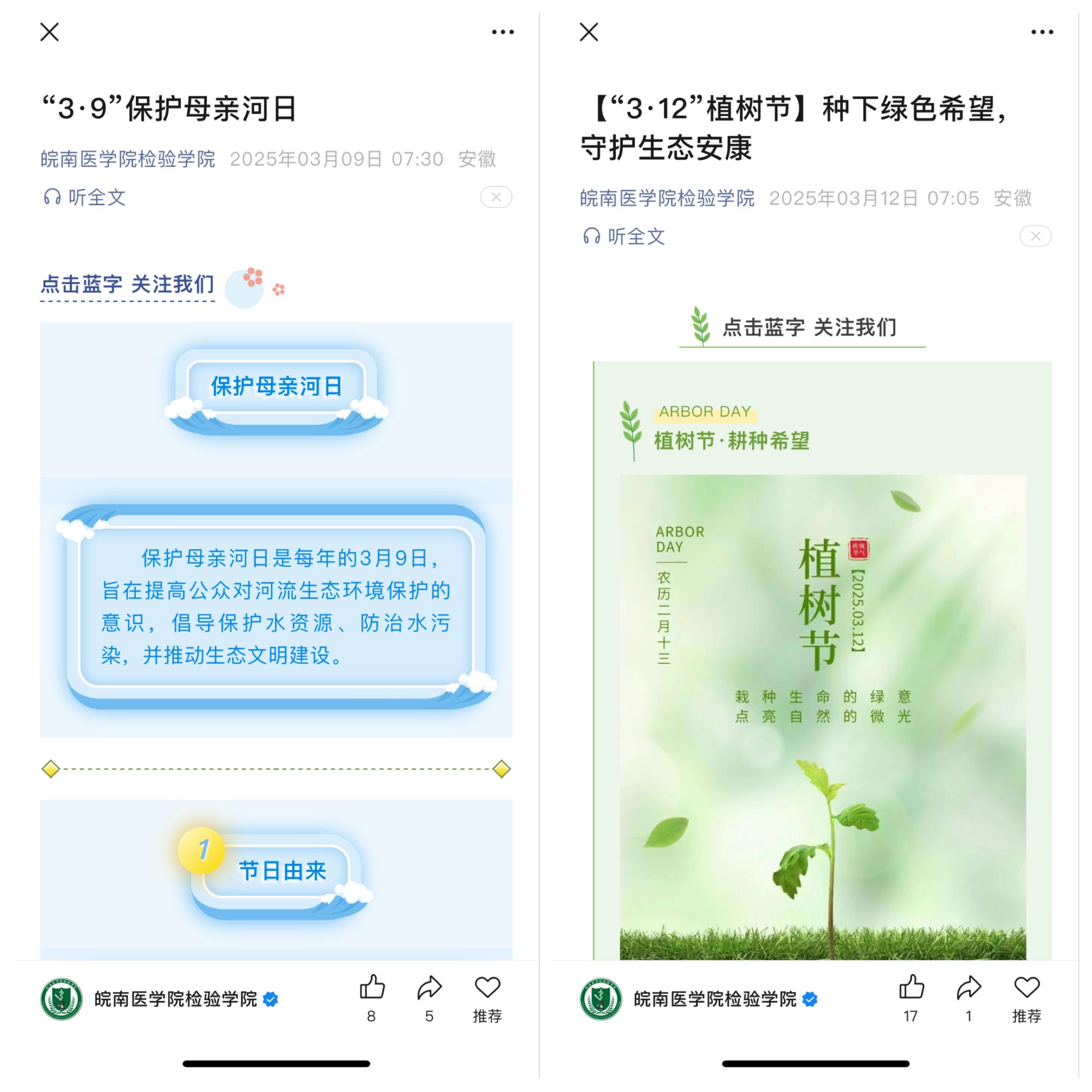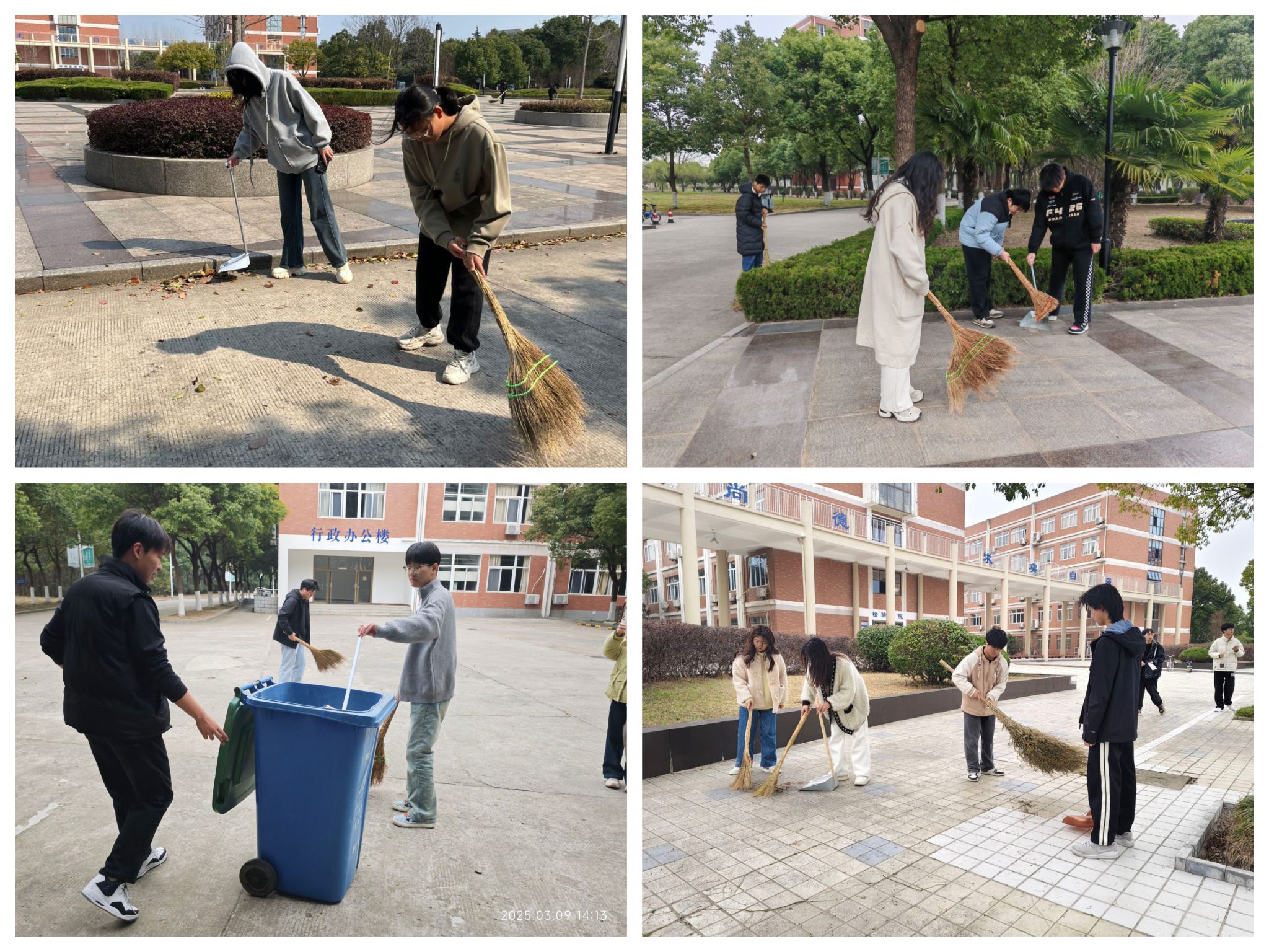 校园焕新展新颜,劳动育人树新风。3月9日和16日,学院学生会开展“美丽校园我先行”环境卫生提升行动。60余名志愿者分组对南区教学楼周边绿化带、马路等区域进行深度清理,重点整治卫生死角30余处,分类回收可循环垃圾30公斤,活动还融入环保知识教育环节,将劳动教育与生态文明理念有机融合。同时,在微信公众号等网络平台,学院团委以“3.9保护母亲河日”“3.12植树节”等时间节点为契机开展生态文明宣传教育,倡导绿色生活方式,提高学生的环保意识。