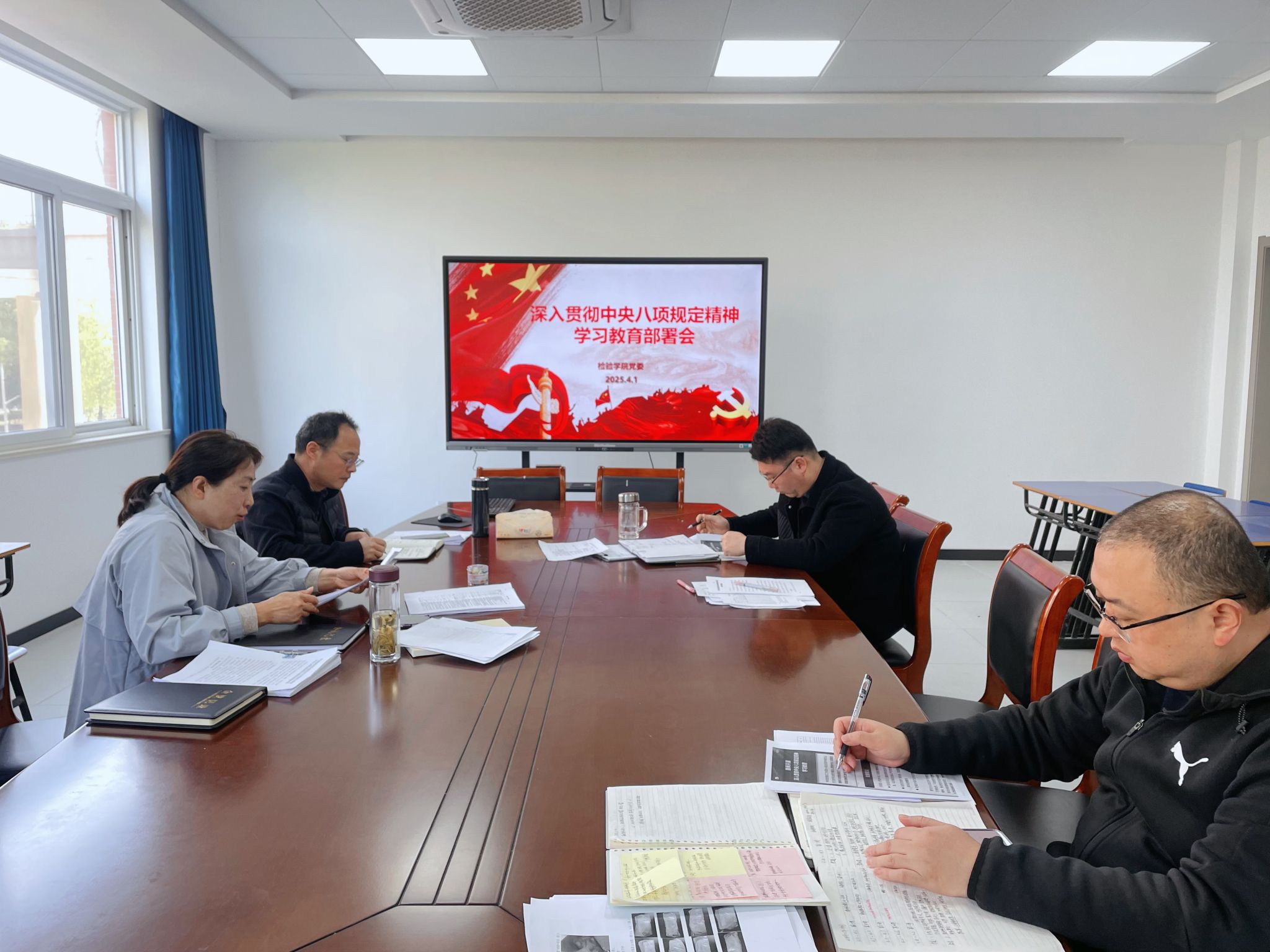 4月1日上午,检验学院党委在学院会议室召开深入贯彻中央八项规定精神学习教育动员部署会,传达《中共中央办公厅关于在全党开展深入贯彻中央八项规定精神学习教育的通知》和省委、省政府召开深入贯彻中央八项规定精神推进会精神,解读了学校开展深入贯彻中央八项规定精神学习教育实施方案,对学院开展深入贯彻中央八项规定精神学习教育进行动员部署。学院党委书记、副院长刘影主持会议并讲话,学院党委委员和各党支部书记参加。