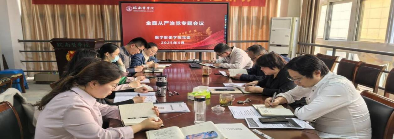 4月15日下午,医学影像学院党委在东辅楼3019会议室召开全面从严治党专题会议。学院党委委员、各党支部书记参加会议,会议由学院党委书记王爱侠主持。
