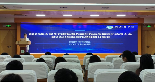 4月23日,口腔医学院举办大学生创新大赛与大学生口腔科普作品创作与传播活动经验交流会,为学子搭建交流学习平台,助力学生提升综合能力。会议由口腔医学院党委副书记张晋艳主持。