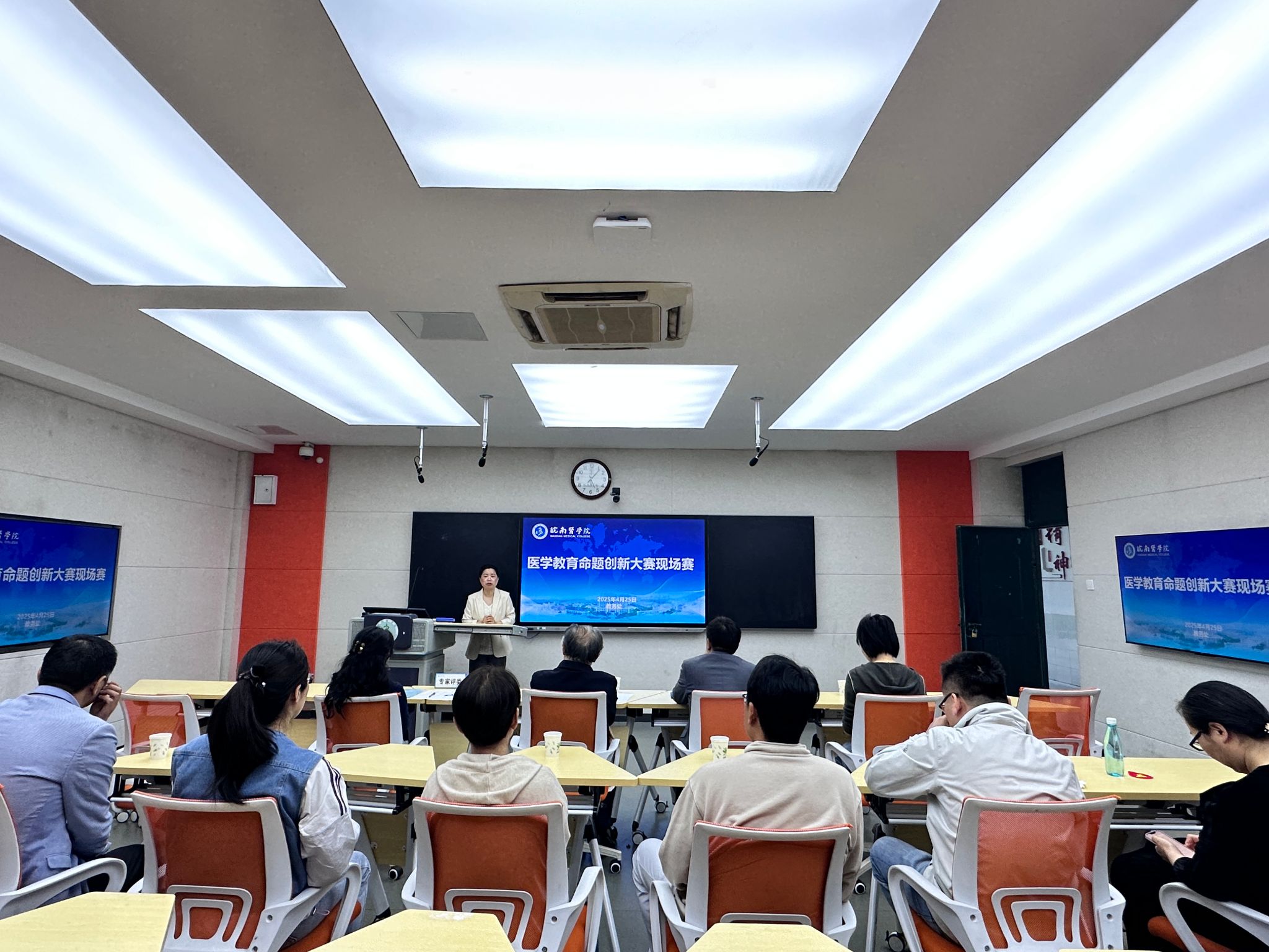 为深入贯彻医学教育改革理念,全面提升教师命题能力,打造高质量医学教育评价体系,4月25日,学校在滨江校区北区1号教学楼智慧教室举办2025年医学教育命题创新大赛决赛。本次大赛自启动以来,吸引了来自医学影像学院、基础医学院、第一附属医院、第二附属医院等多个单位的优秀教师团队踊跃参与。经过激烈角逐,最终13位教师脱颖而出,齐聚决赛现场。决赛由教务处处长黄月娥主持。
