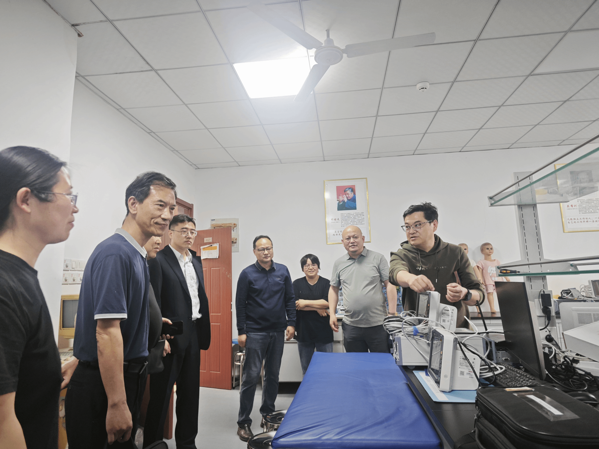 座谈会后,金道明一行在学院党政领导的陪同下参观了学院教学实验室,详细了解生物医学工程专业实验课程体系、技术创新成果以及学生参与科研项目的情况等,对学院实验教学的基础设施和实践教学体系高度认可,并表示学院的实验内容设置与企业需求高度匹配。