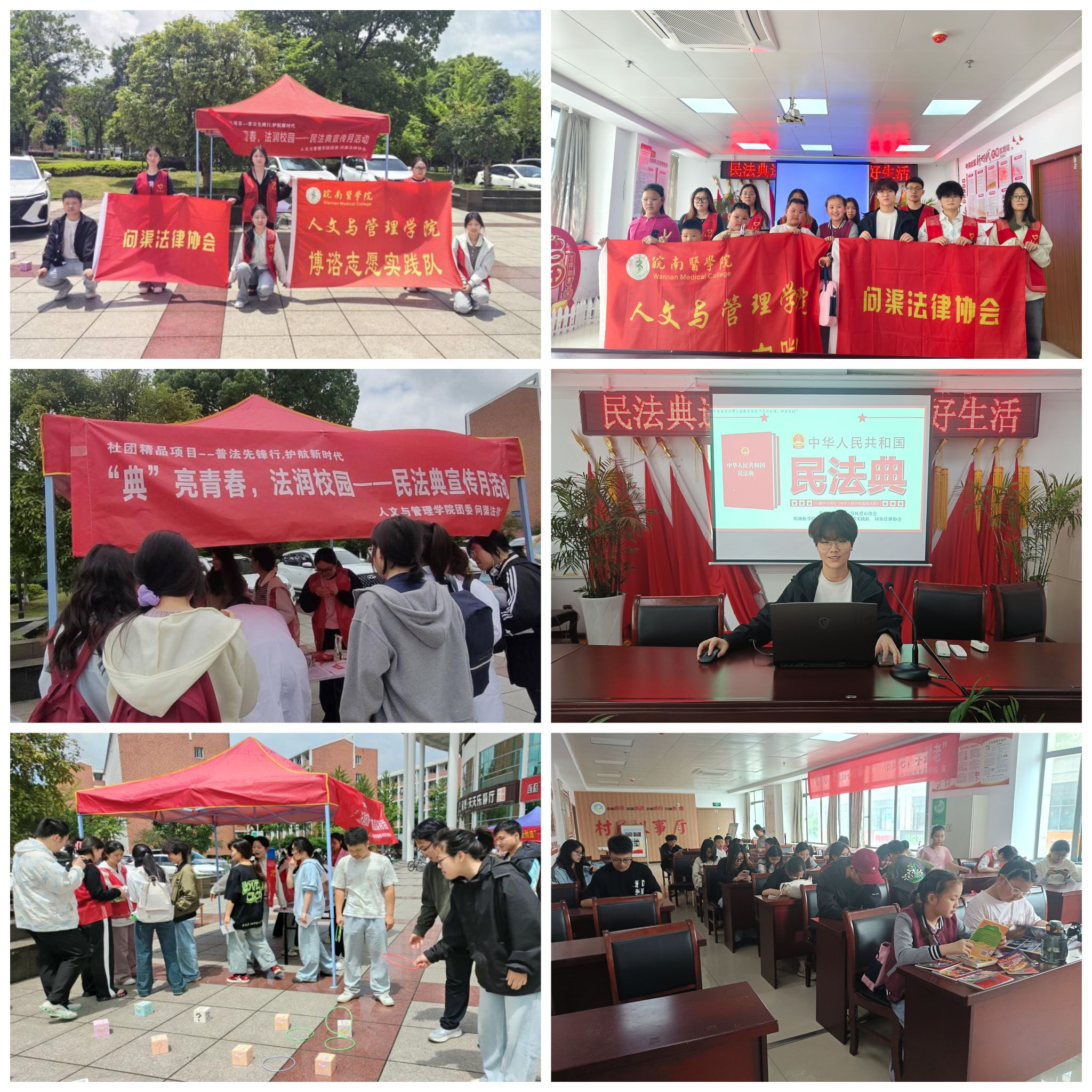 法典润校启新思,民生释法传温情。“法润江淮”普法宣传活动构建校社双阵地普法网络。5月9日,博谘·青春法治行实践队联合问渠法律协会,在滨江南北校区推出“‘典’亮青春,法润校园”主题活动,通过“填漏补缺·成语悟法”和“套定法典·趣学真章”小游戏,让学生在趣味竞技中掌握劳动合同、物权保护等实用法律知识。5月11日,团队针对社区治理痛点,在中沟社区举办“美好生活·民法典相伴”专题讲座,主讲人分析“宠物伤人维权”“高空坠物追责”等典型案例,解析物权保护、婚姻继承等七大民法典亮点,帮助居民破解“遇事找法”的操作盲区,为构建法治社区注入专业动能。