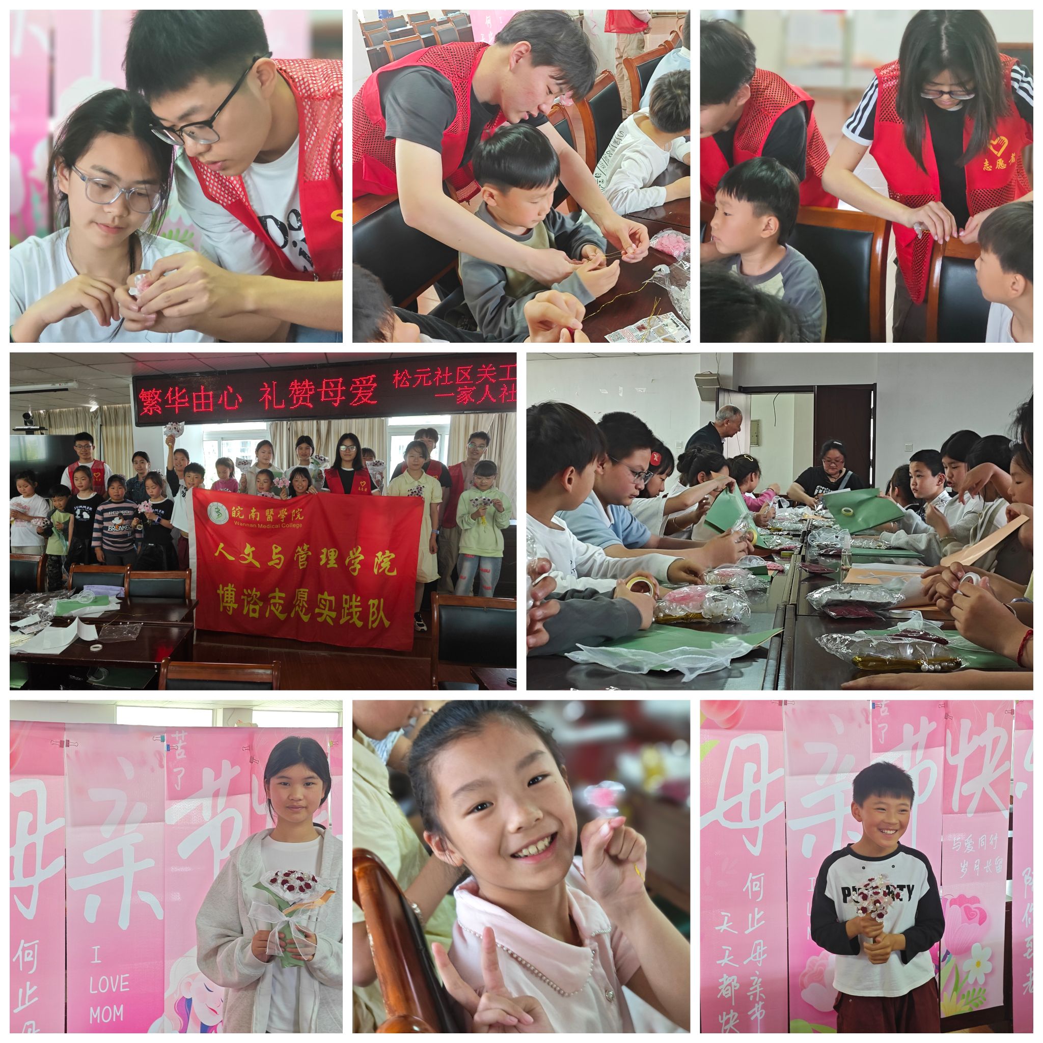 巧手寄情承孝道,童心礼赞颂春晖 。母亲节期间,志愿关怀行动温情涌动。5月10日,博谘·幸福葆实践队赴乐青荟•颐养院开展“温情满颐养,手工传爱意”主题活动,志愿者协助老人共同制作剪纸相框,于传统技艺传承间搭建代际情感纽带。5月11日,博谘•筑梦青春实践队在中沟社区开展“繁花由心,礼赞母爱”儿童手工主题活动,志愿者帮助孩子们用彩纸、黏土制作花束,并鼓励他们将手工成果赠予母亲。两项活动以“银龄关怀+童心培育”双向路径,既弘扬孝亲敬老传统美德,又培植青少年感恩意识,推动社区精神文明共建共享。