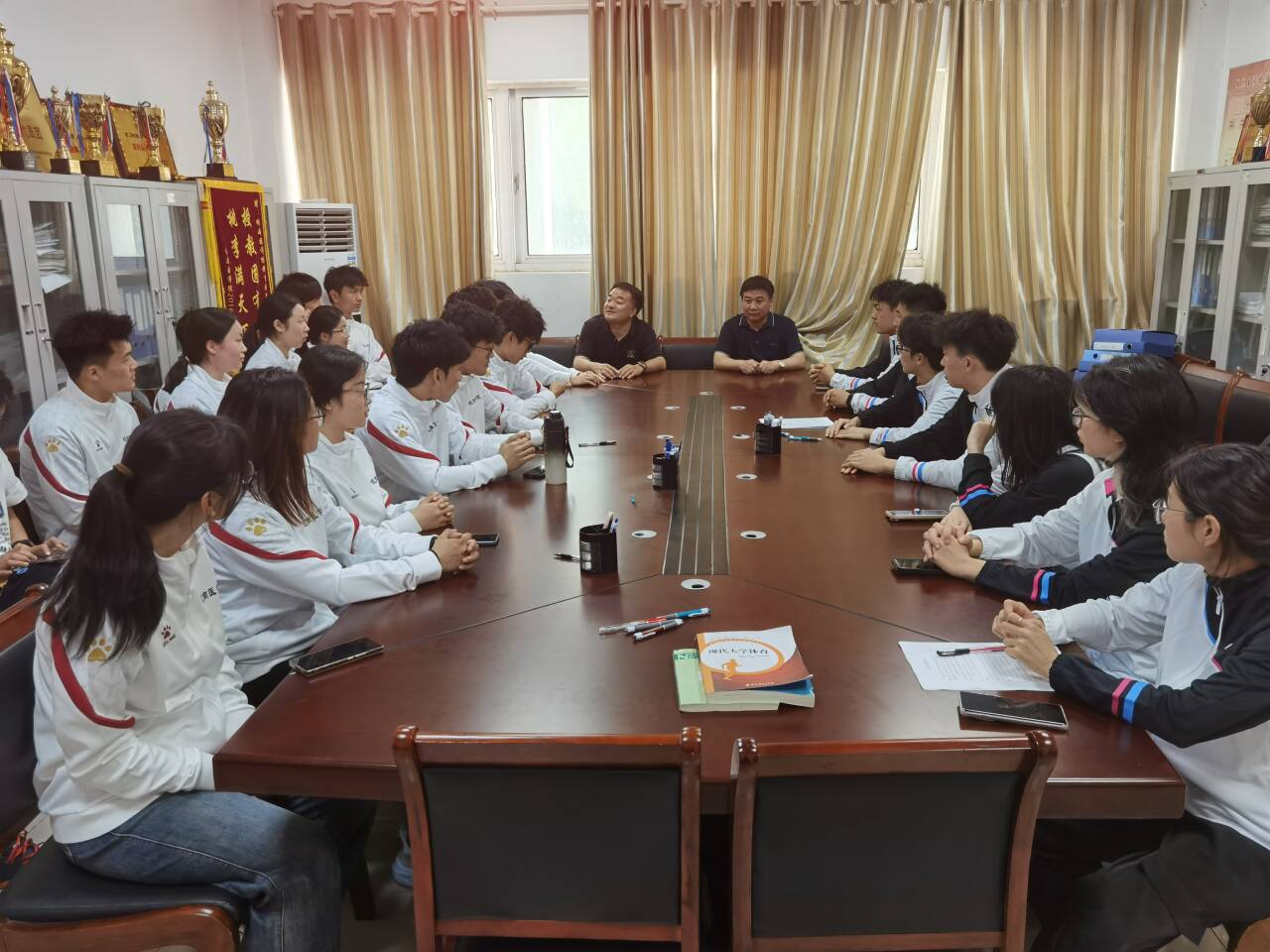 2025年安徽省学生体育联赛田径比赛和乒乓球比赛即将开始,为激励参赛队员奋勇拼搏、争创佳绩,公共基础学院于5月20日中午在体育教研室会议室召开出征动员会。公共基础学院党总支副书记、副院长余亮,体育教研室主任周广仁,全体教练员、参赛运动员及相关工作人员参加会议。
