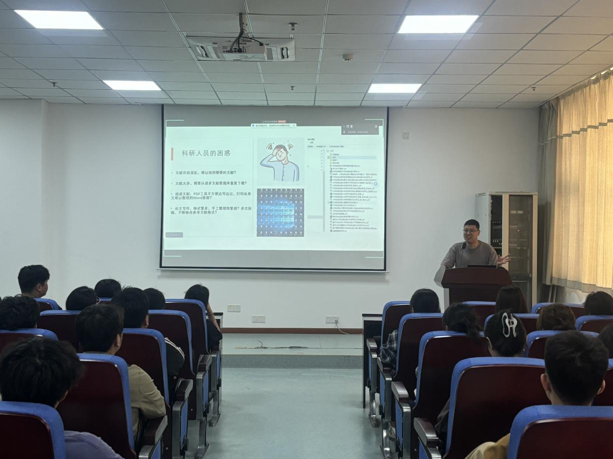 文献管理用智能,贯通科研全流程。5月7日,图书馆联合研究生学院举办“NoteEXpress应用”专题培训。培训讲师马晓坤系统讲解了应用NoteEXpress从文献采集、管理到写作的全流程解决方案,现场演示了PubMed等多源数据库文献导入、智能查重去重、多终端同步以及Word插件自动生成参考文献功能,传授了NoteExpress旗下的问天AI助手在阅读、润色、续写、综述等方面的应用优势与方法,并就师生密切关注的批量导入失败、设备同步异常等问题进行逐个分析解答。现场互动踊跃,交流气氛热烈。