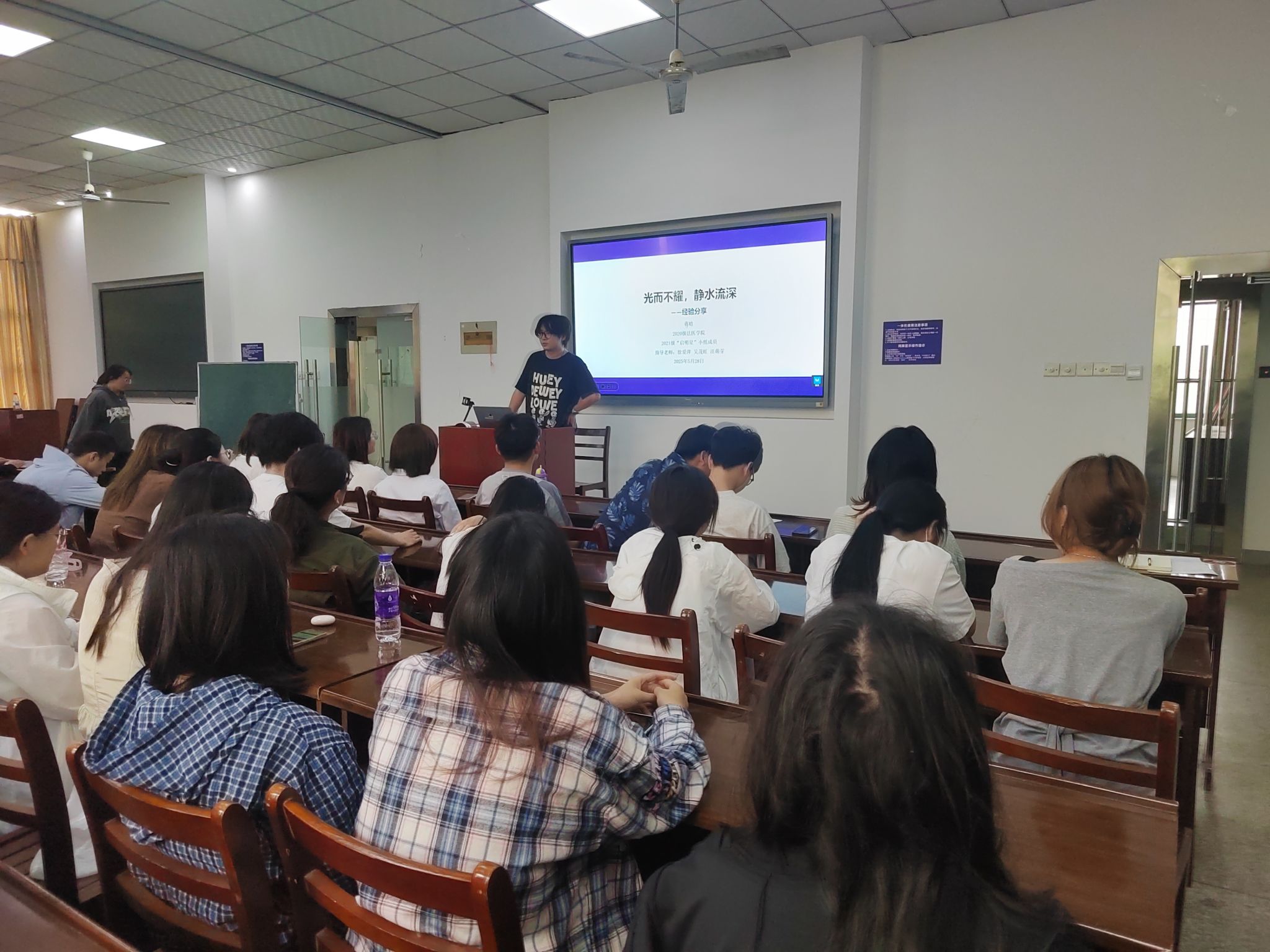 曹俊杰同学今年成功考取我校法医学研究生。他以“考研那些事”为题,以轻松诙谐的语言与学弟学妹们分享考研心路历程。他介绍了为什么选择考研、备考规划与过程、挑战与应对等三方面内容,建议大家列出每日学习计划,坚持劳逸结合,提高学习效率,表示“考研不是无间道,而是开往春天的列车。”