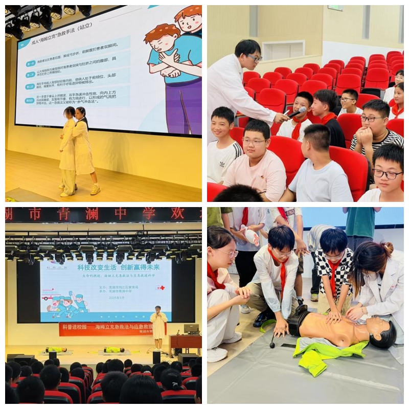 此次由麻醉学院与鸠江区教育局联合开展的科普进校园活动,将理论知识与动手实践紧密结合,不仅让同学们掌握了实用的急救技能,更在他们心中播下了“敬畏生命、科学施救”的种子,为构建平安、和谐的校园环境贡献了积极力量。(张超、倪梦溪/文 沈怡彤、屈瑾/摄)