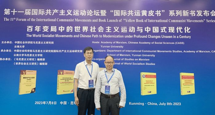 7月8日至9日,由中国社会科学院马克思主义研究院和云南大学主办的第十一届国际共产主义运动论坛暨“国际共运黄皮书”系列新书发布会在昆明召开,来自中共中央党校、上海社会科学院、山东大学、苏州大学、华中师范大学和深圳大学等学者,以及越南、老挝、匈牙利、英国、瑞士、意大利等国家和地区的马克思主义政党领导人和学者100余人,通过线上与线下结合的方式参会。我校马克思主义学院院长陶庭马教授、毛泽东思想和中国特色社会主义理论体系概论教研室汪峰副教授应邀参加论坛。