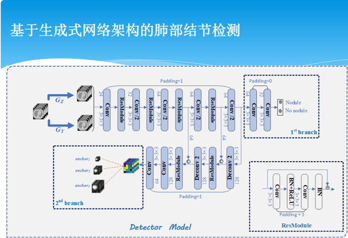 昌杰博士以“基于生成式网络的肺部结节探测”为题作学术报告。报告首先介绍了肺癌在我国的危害性,指出目前肺结节探测研究中面临的主要问题,包括肺部结节种类多且特征不一、结节和非结节间的分布不均匀以及肺部结节检测计算复杂度高等。针对这些问题,昌杰博士结合自身的研究介绍了解决肺结节探测的研究思路,该思路利用所提出的3d-nodule-GAN网络进行不同类别样本的可选择性扩增,并结合多层次堆叠和多分辨率特征融合的深度学习网络实现高精度的肺结节检测。整场报告思路清晰,精彩生动。报告结束后,昌杰博士与参会老师进行了热烈交流和讨论。